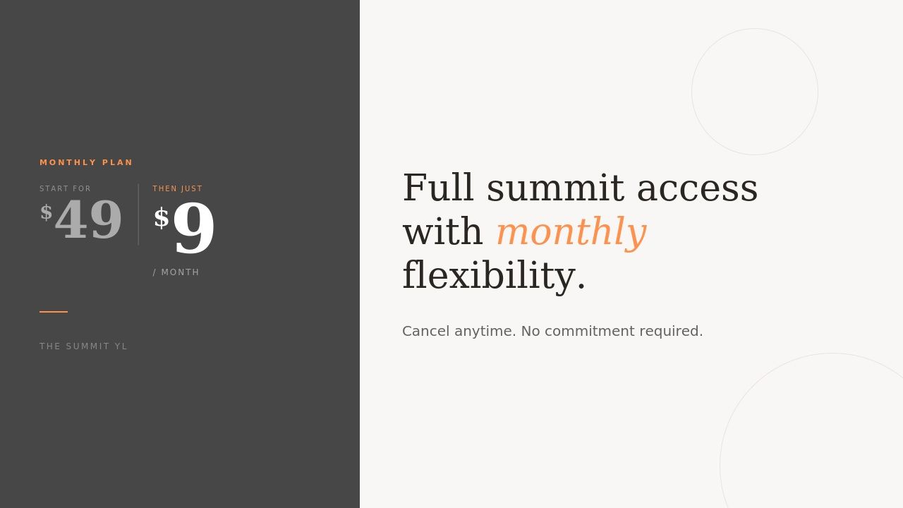 Enjoy Full access to the 2026 Summit + Animal Summit — live & on-demand. One month access to all past Summit replays. One month of access to the Summit Community. Cancel anytime!